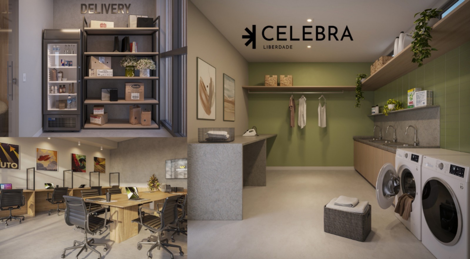 As inovações vão além da tecnologia aplicada à infraestrutura. O Celebra Liberdade oferece um hub de facilidades que inclui minimercado interno para compras rápidas, lavanderia compartilhada e espaço de coworking. A proposta é proporcionar mais praticidade, economia de tempo e redução de custos individuais de manutenção.